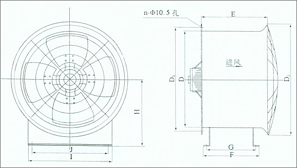 LFF—I型冷庫專用風機結構尺寸圖單位:mm
